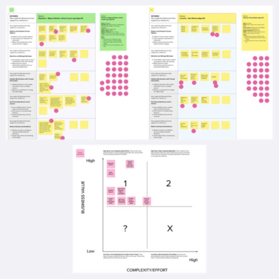 I led experience strategy and product design across discovery, testing, and MVP definition, working closely with ASIC stakeholders to shift the platform from a static, content-heavy site to a journey-based Retirement Hub grounded in real life stages, behaviours, and needs. The outcome was a validated MVP experience, a future-state vision, and a multi-year roadmap aligned to government standards and delivery realities.