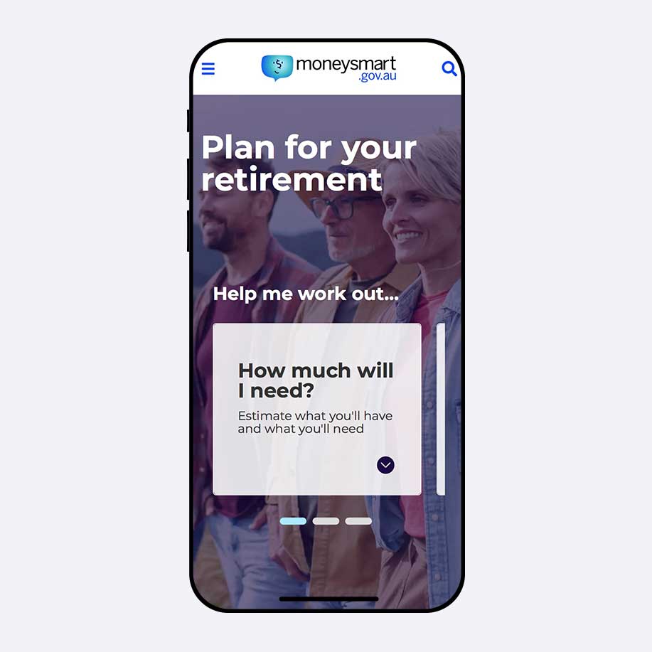 ASIC engaged Wave to reimagine the MoneySmart retirement experience, transforming complex, emotionally charged retirement planning into a clear, supportive digital journey Australians could trust.