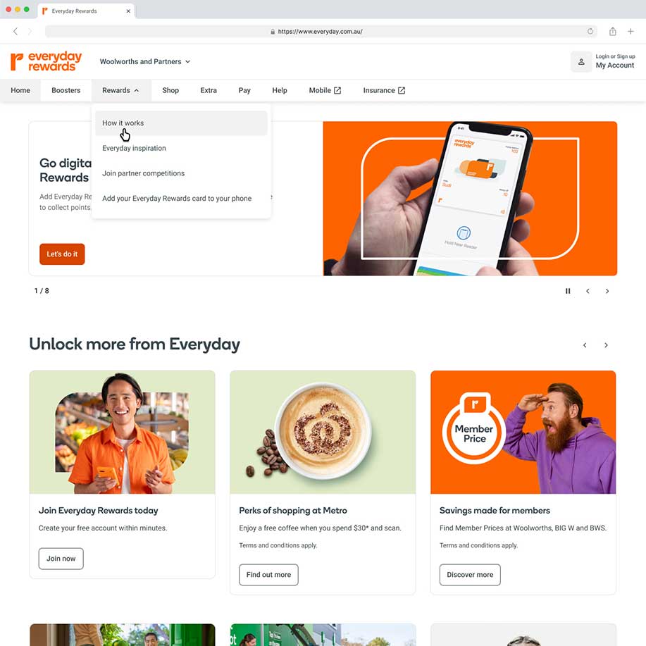 Our research aimed to identify and validate the optimal Everyday navigation and homepage experience, with a focus on clarity, usability, and shopability across web, responsive, and app platforms. By combining qualitative insights with behavioural data, we shaped strategic and design decisions to deliver a seamless, consistent customer experience. An iterative approach built confidence across the organisation, enabling fast execution and alignment across channels, while laying the groundwork for future research and design phases.